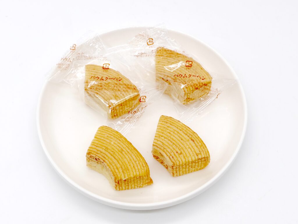 『厚切りカット バームクーヘン』は、焼き加減が揃った「綺麗な年輪」をしたバームクーヘンとなっています。