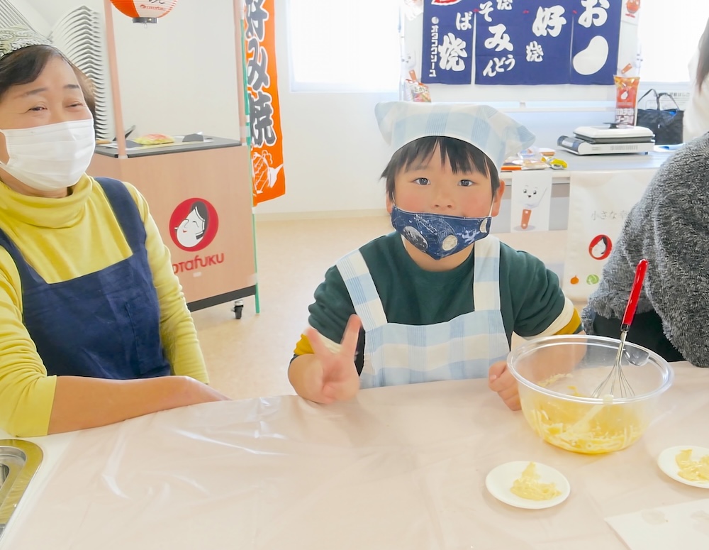 2025年12月13日、道の駅 まえばし赤城にて、『お好み焼料理教室キャンペーン』応募者の親子を対象に、体験イベント『マヨネーズ作り&お好み焼教室&オコアート&紅茶アレンジティー体験』が開催されました。