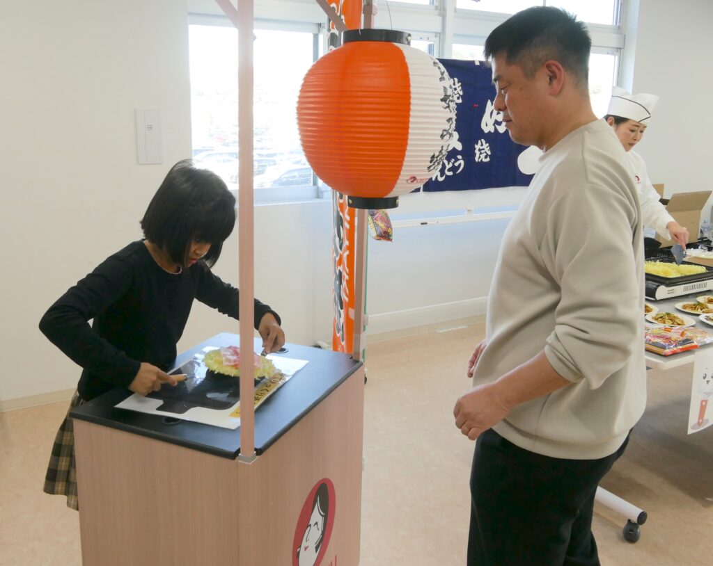 オタフクソース株式会社様のお好み焼士である小笠原先生が、お好み焼の作り方とオコアートを教えてくれました。