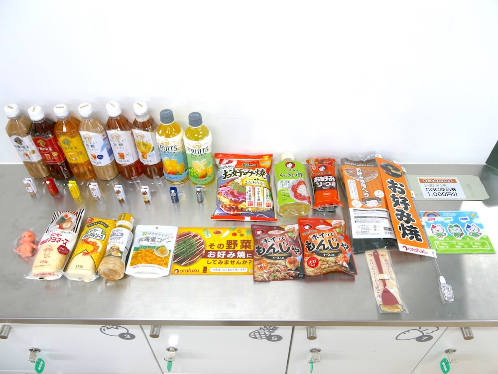 マヨネーズや今回使用したお好み焼こだわりセットやお好み焼のヘラ、キリン 午後の紅茶シリーズにCGC商品券1000円分など、お土産もとても豪華な内容でした。