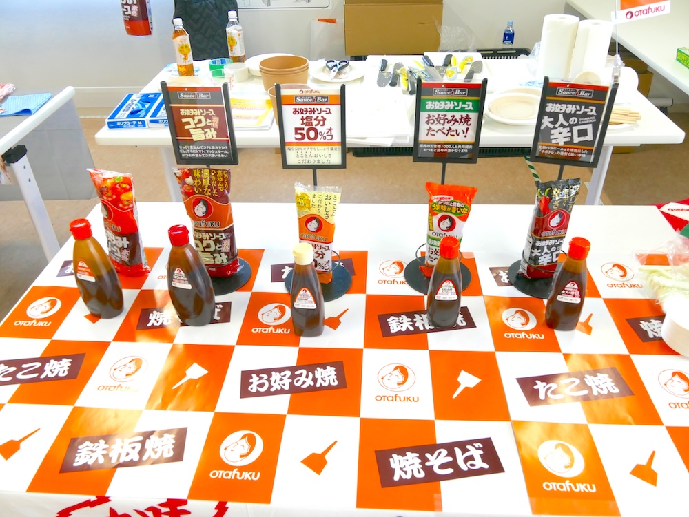 ソースのブースには、甘めの味わいから辛さの効いた大人向けの味わいまで、種類豊富なお好みソースが用意されています。