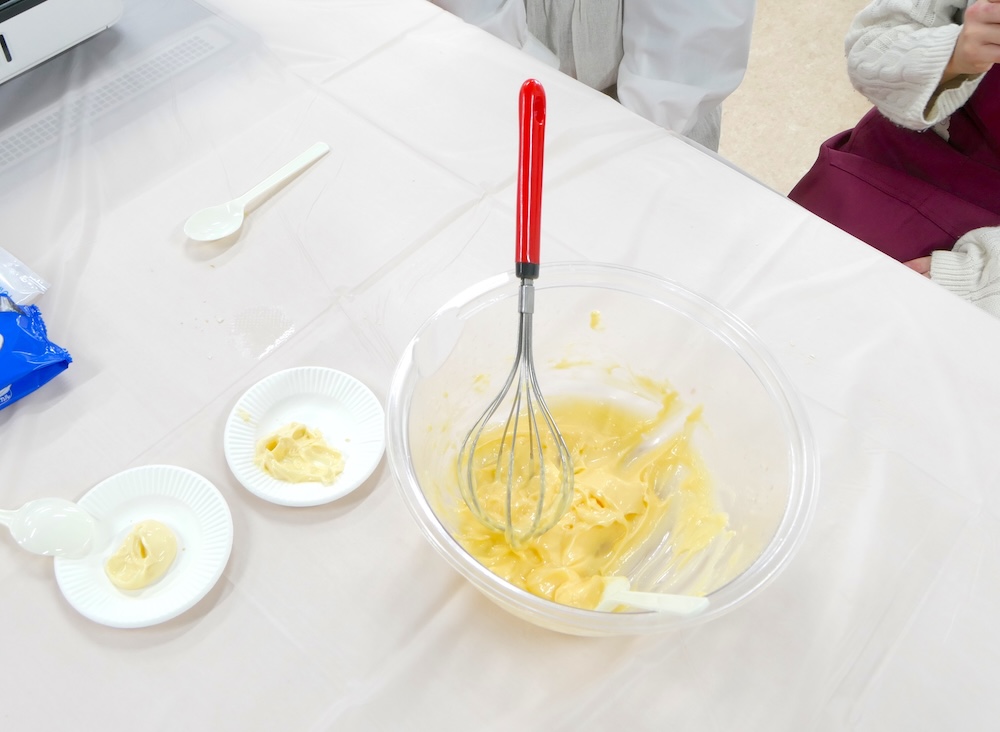 知識のあとは、マヨネーズの作り方を教えてもらいました。