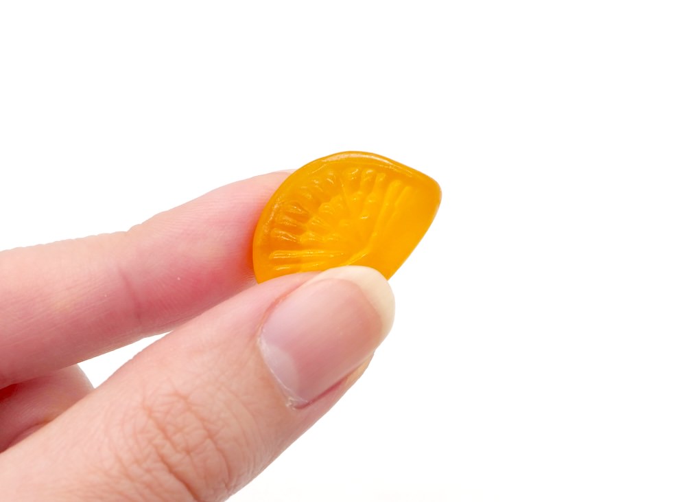 オレンジ色に輝くグミの中に閉じ込められた果汁は、素材そのままの味わいをしっかりといかしていて風味豊かな仕上がり。