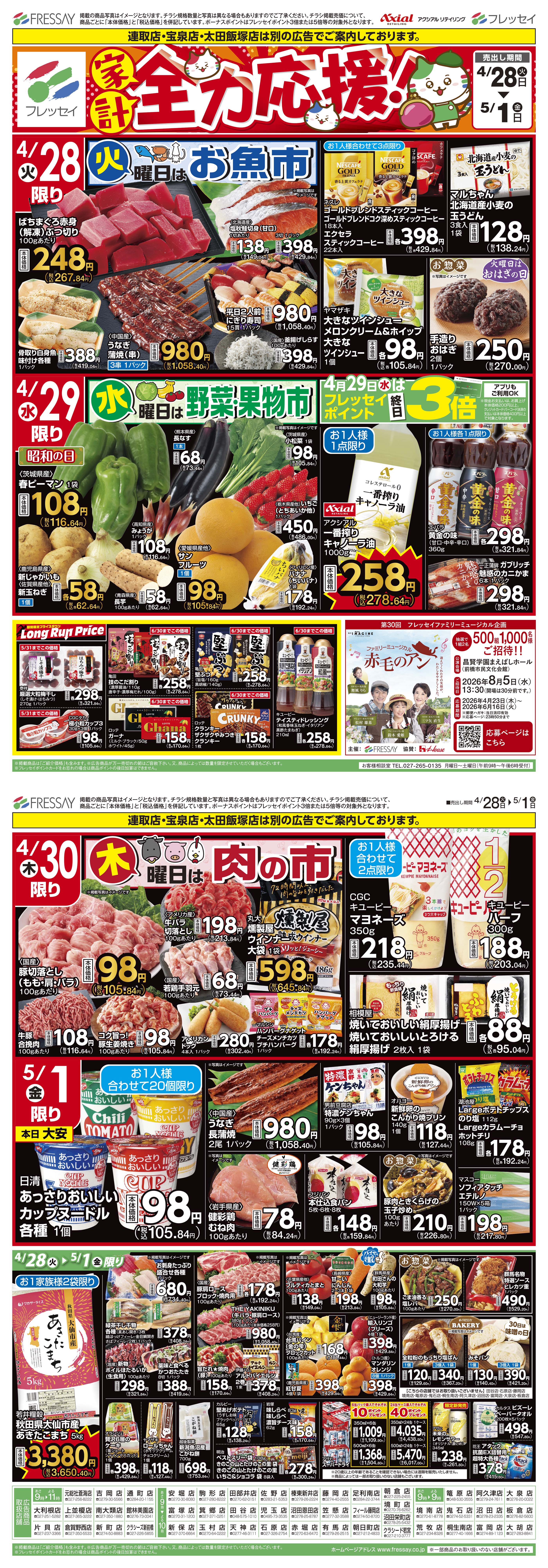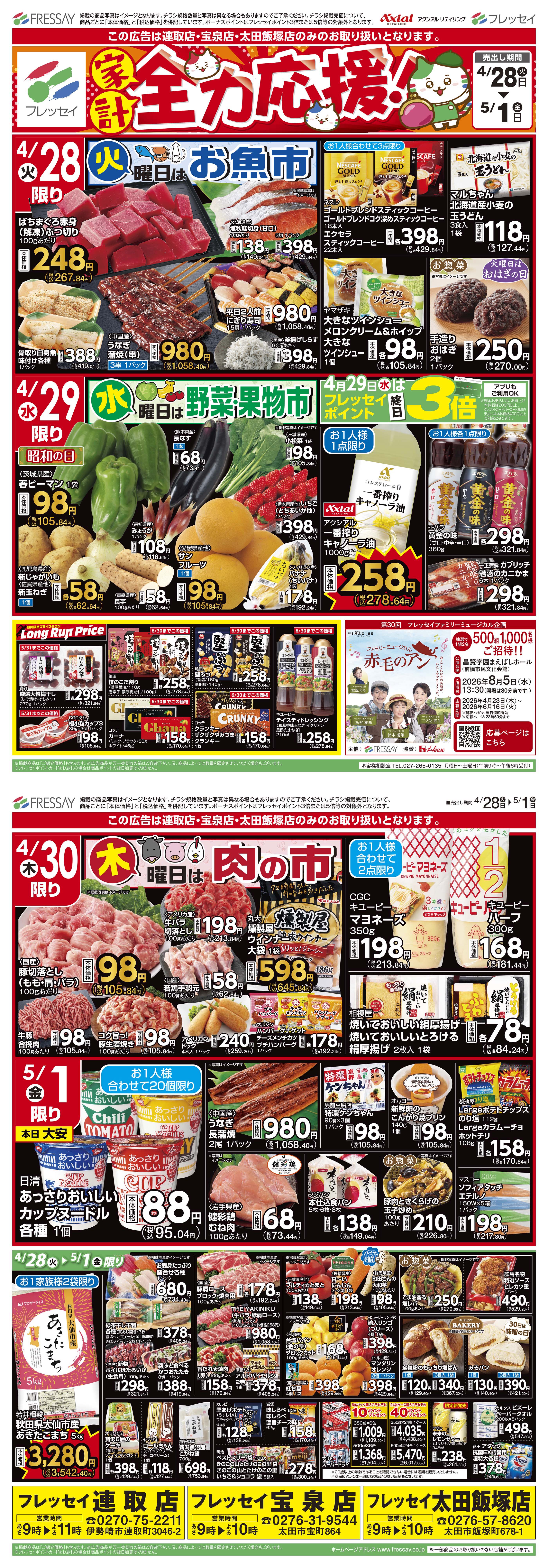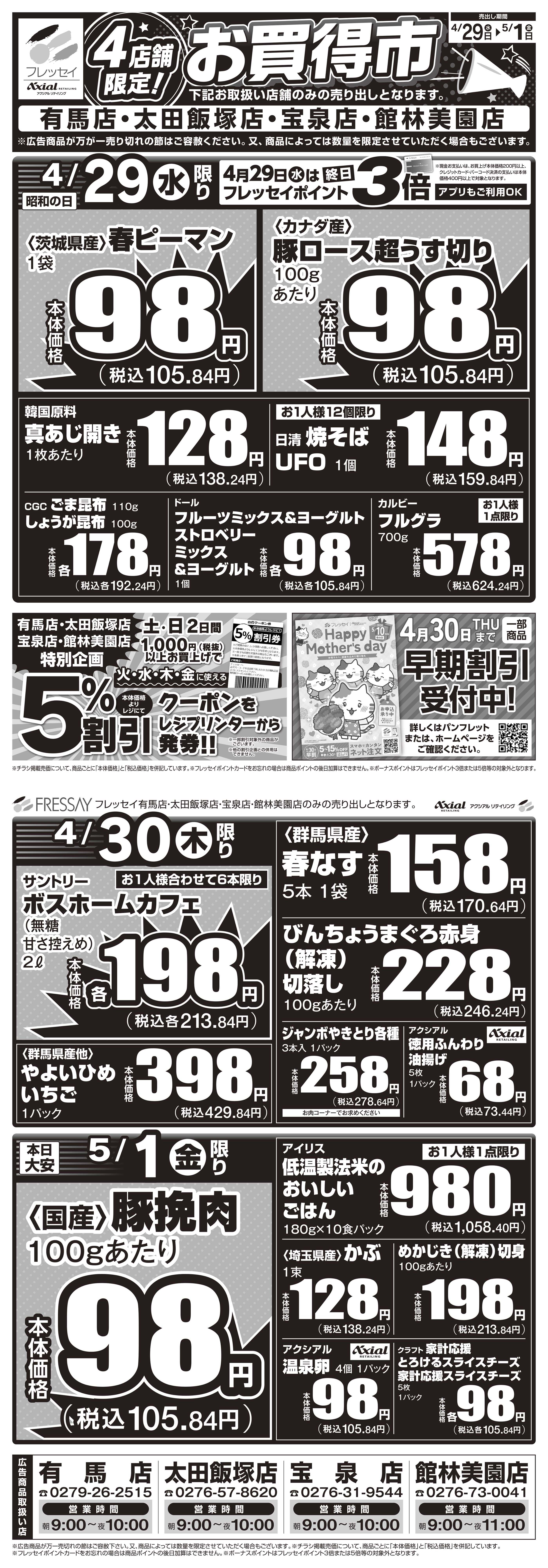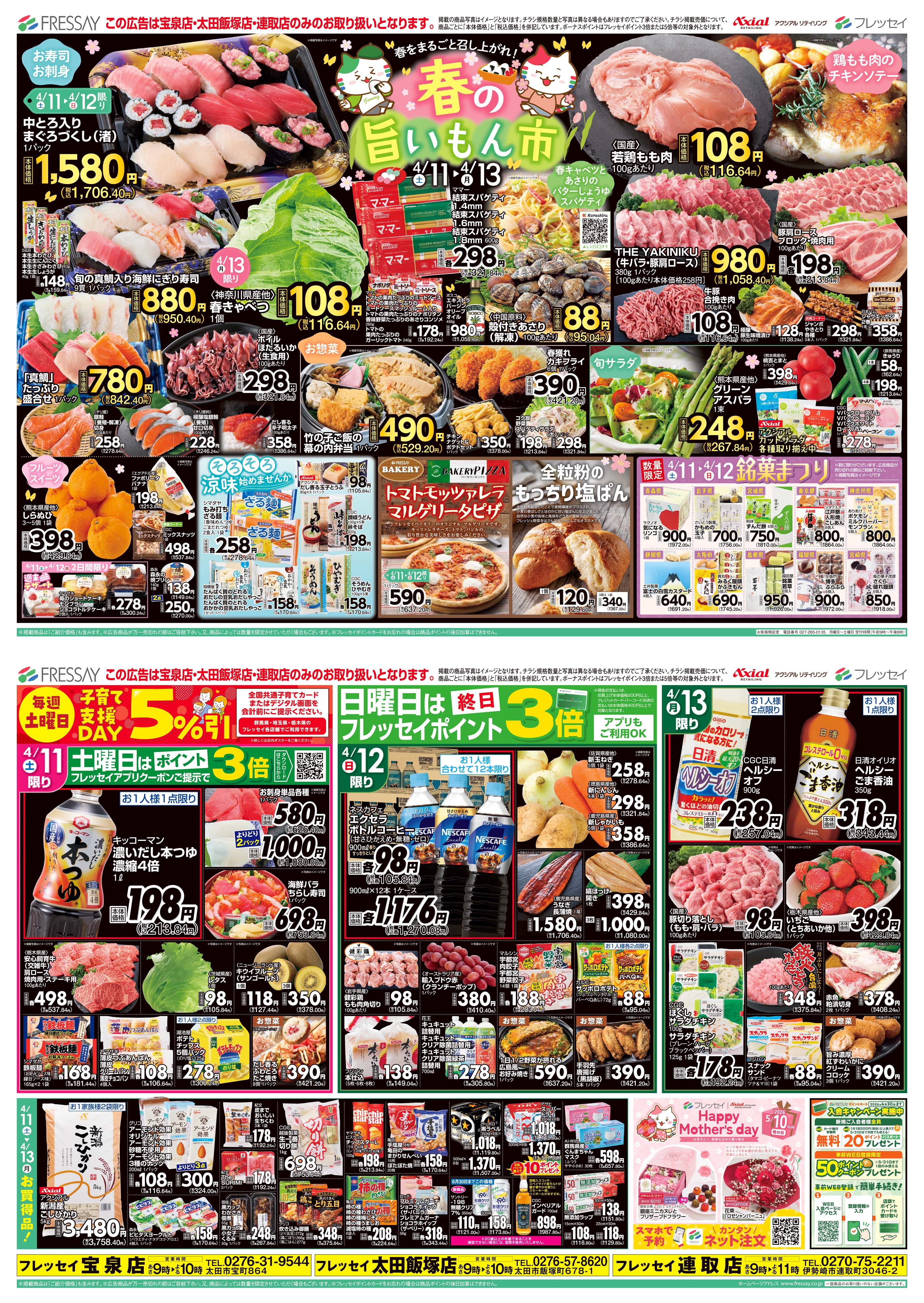 宝泉店・太田飯塚店・連取店は別の広告でご案内しております。
