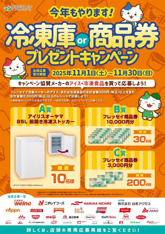 今年もやります!冷凍庫 or 商品券プレゼントキャンペーン