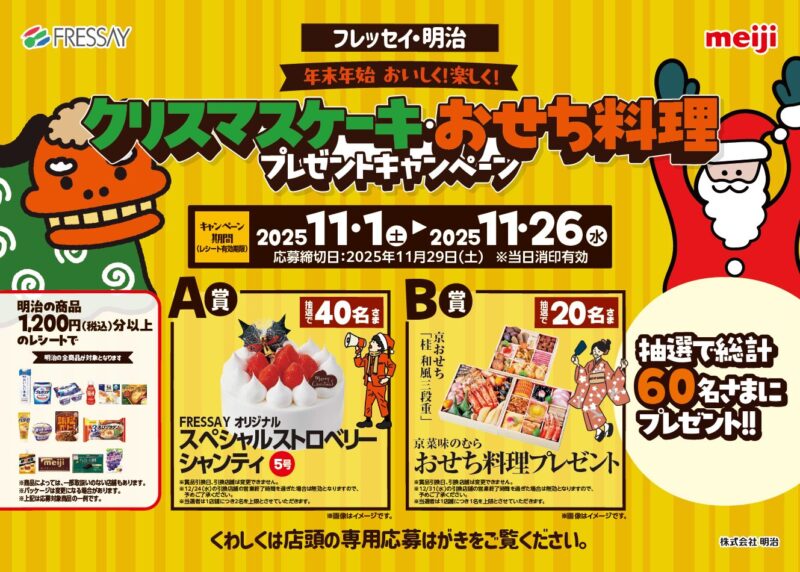 フレッセイ×明治 クリスマスケーキ・おせち料理プレゼントキャンペーン!!