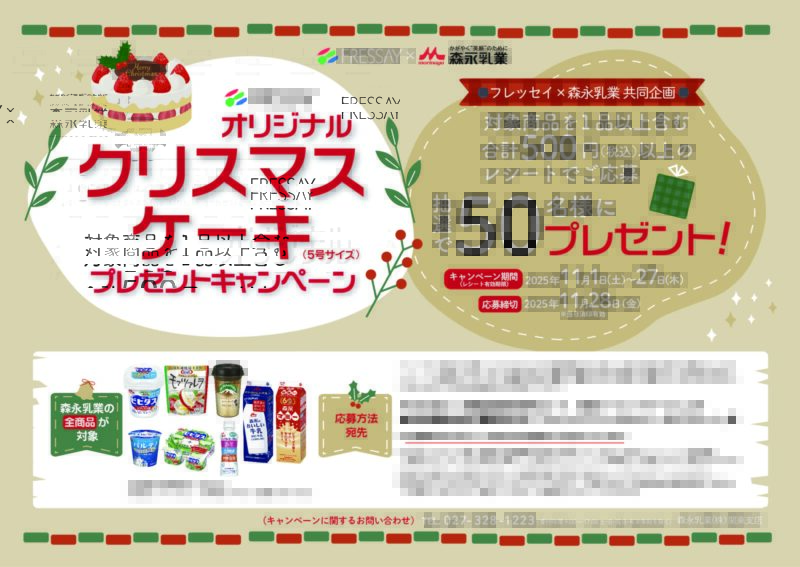 フレッセイ×森永乳業 FRESSAYオリジナルクリスマスケーキプレゼントキャンペーン!!