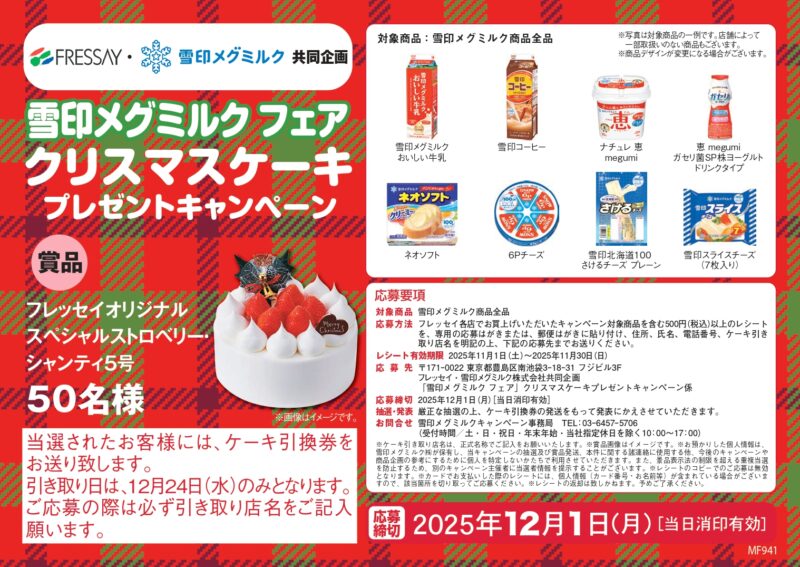 フレッセイ×雪印メグミルク「雪印メグミルク フェア」クリスマスケーキプレゼントキャンペーン!!