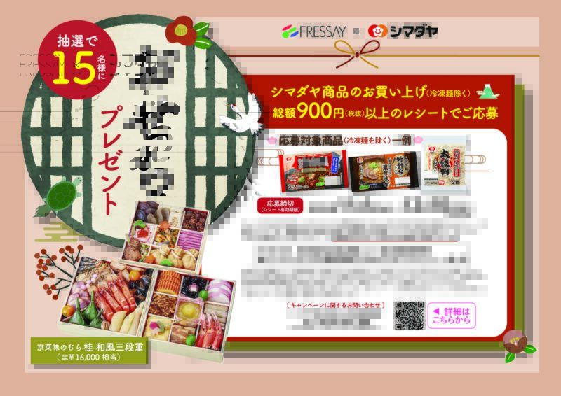 ㈱フレッセイ&シマダヤ㈱ 共同企画 『おせちプレゼントキャンペーン係』宛