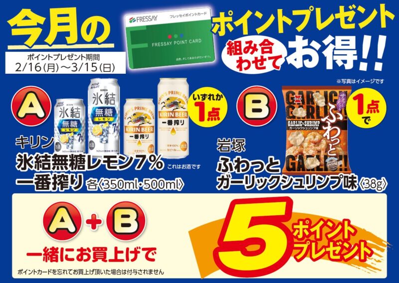 A+B一緒にお買上げでフレッセイポイントカード 5ポイントプレゼント