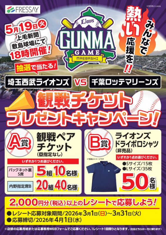 埼玉西武ライオンズ VS 千葉ロッテマリーンズ『観戦チケットプレゼントキャンペーン!』